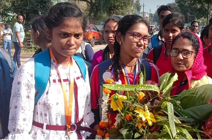 Paralakhemundi,(Tarini Prasad Panda): State Level Surabhi Competition from Hilltop Higher Secondary School of Mohana of Gajapati district,2nd year student Jagnyaprabha Behera stood first in handwriting & second on slogan competitions. For her great feat Principal Bhagaban Bisoyi,Anil Kumar Tripathy Political Science lecturer with other teaching staff accoladed.