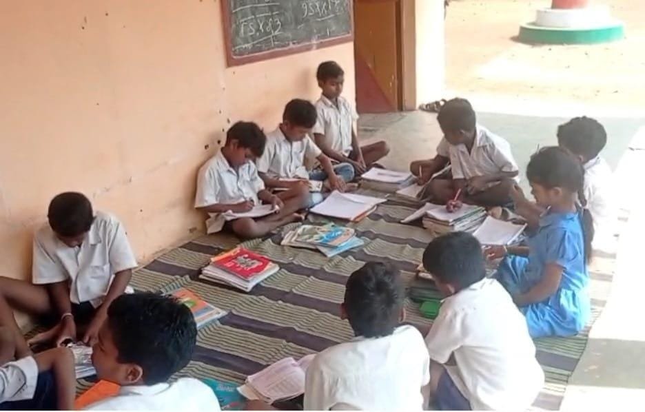 Paralakhemundi,(Tarini Prasad panda): interior Uruda Primary School of Rompa panchayat of Gosani block of Gajapati district a hectic scene found. 71 years old school lost its sanctity,due to lack of classrooms students use to read at veranda. About 150 students are studying in that school. Due to lackluster attitude of administration,on all seasons eg;hot summer, rain & cold they are victimised.Villagers knocked at Collector Gajapati to solve their issues.