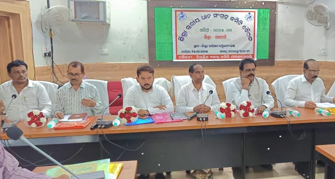 Paralakhemundi, (Tarini Prasad Panda):Chaired by Collector inchage Munindra Honoga, regarding purchase of procured paddy by government meeting held.Among others MLA Paralakhemundi Er. Rupesh Kumar Panigrahi,ZP President GTRao,Additional District Civil Supply Officer Subhransu Bhoi, ARCS Harihar Seth, Secretary of RMCS Rebatimohan Rout President of district Farmers Committee Suryanarayan Patnaik graced on dias.Last year 15,560 farmers registered & from 15,491 farmers 68,776,524 matric ton of paddy of ₹ 158,18,60052 purchased; where input subsidy of ₹55,02,12,192 given.Last year @ ₹2300 cost of paddy per quintal decided & this year increased to ₹2369. From 4 blocks through 47 packs from 15,616 farmers 56,112000 matric ton will be purchased.All arrangements made for smooth collection, where 7 check points & cctv cameras,too,fixed, said Supply department Officer.