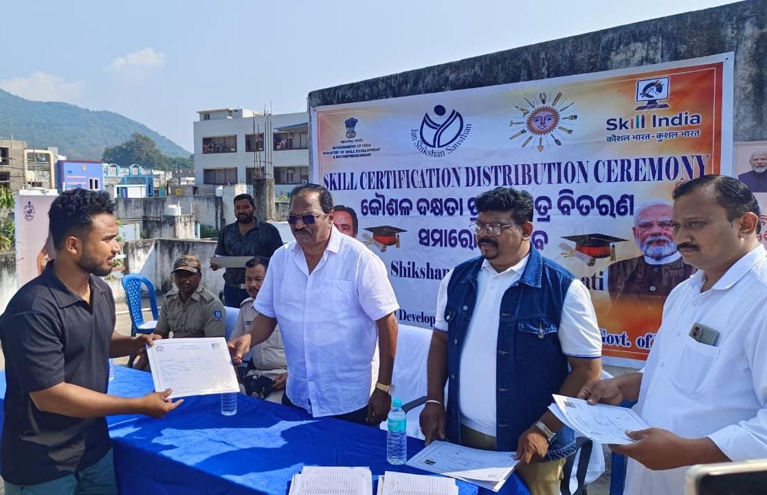 Paralakhemundi,(Tarini Prasad panda): Gajapati District JSS(Jana Sikhyan Sansthan) certificates distribution ceremony held.Presided by Secretary of CCD cum Chairman of JSS AJagannath Raju,Junior Motor Vehicle Officers, officials from Police Department attended.5 batches of trainees comprised 100 trainees included SC,ST & General categories.They can join on various transport sector for self reliance.Supported by Skill Development & Entrepreneurship, Government of India, program coordinated by PJivan Das,Director of JSS. Staff of JSS coordinated the program.