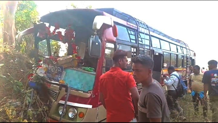Paralakhemundi,(Tarini Prasad Panda): A passenger bus lost control and hit a hill in Gajapati district this afternoon . In this incident, 30 people were injured while 7 of them are seriously injured. According to the incident, a private bus named Vikrant, going from Sambalpur village in Nuagarh block of Gajapati district to Berhampur via R. Udayagiri, lost control and hit a hill near Indira Memorial College at Chandiput in Mohna block. In this, incident almost all the passengers in the bus were slightly injured, while 30 passengers were rescued by the locals and admitted to Chandragiri Hospital. 7 persons of them are seriously injured, arrangements are being made to refer them to Berhampur Hospital. The Mohana police reached the scene of the accident and are continuing the rescue operation for the injured with the help of locals.